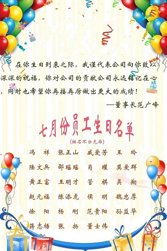 【生日祝福】恭祝7月生日的員工生日快樂(lè)!