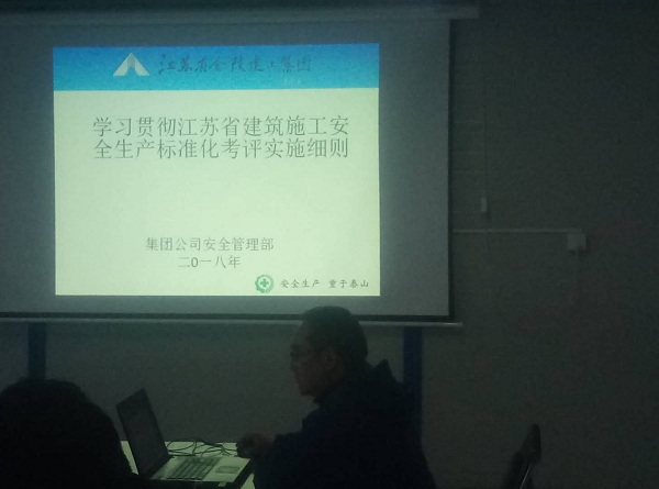 會上,首先由安全管理部副經理孫孝勇帶領大家學習江蘇省住建廳最新發(fā)布的《江蘇省建筑施工安全生產標準化考評實施細則》。