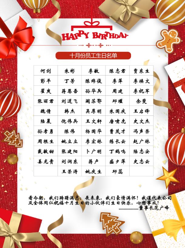 【生日祝?!抗ё?0月生日的員工生日快樂!