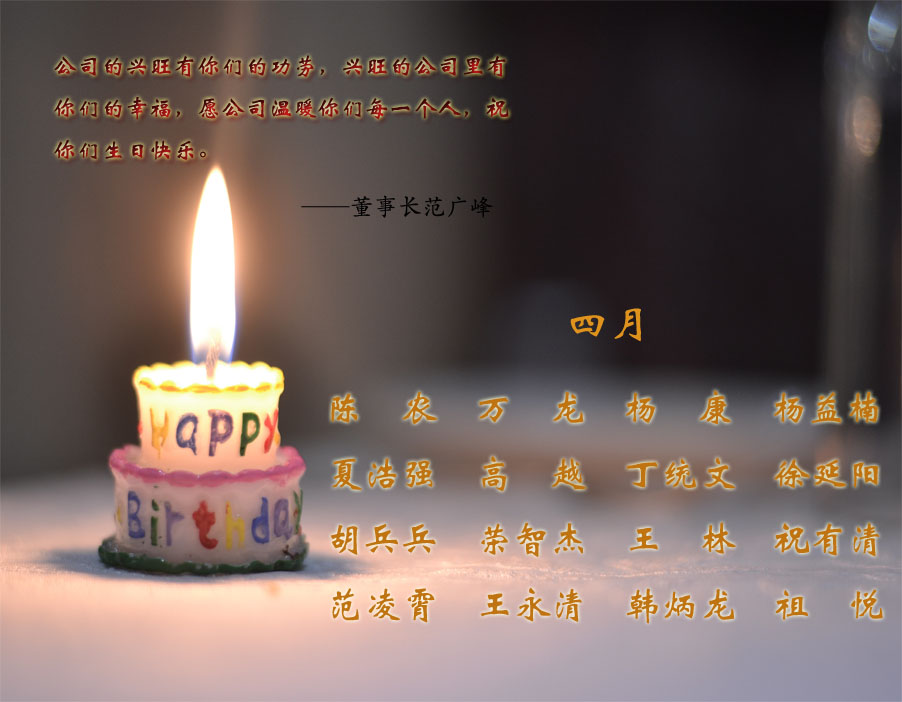 【生日祝福】恭祝4月生日的員工生日快樂(lè)!