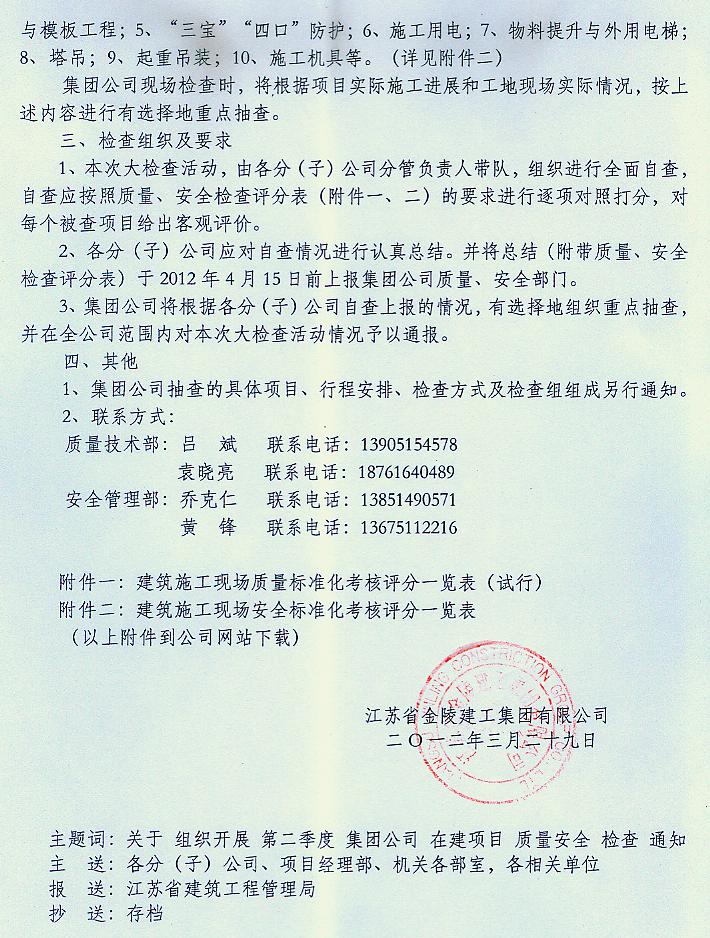 關(guān)于組織開(kāi)展第二季度集團(tuán)公司在建項(xiàng)目質(zhì)量安全大檢查的通知