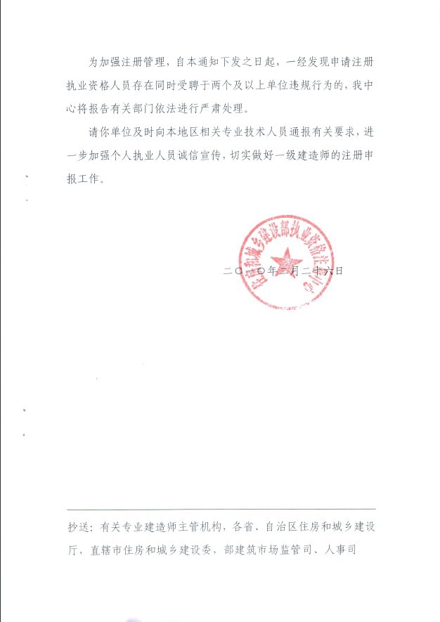 關(guān)于規(guī)范一級建造師注冊申報工作有關(guān)問題的函