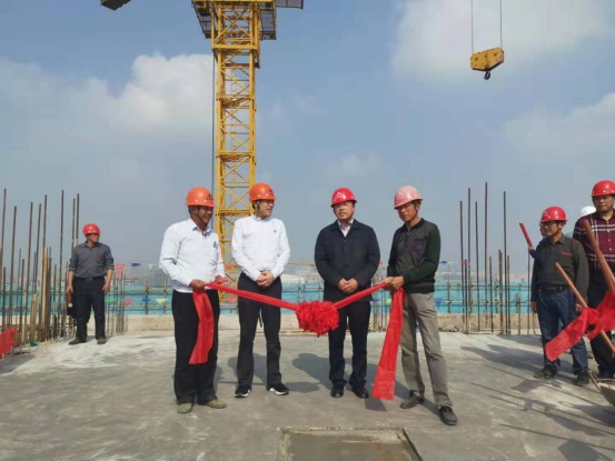 封頂儀式上,聯(lián)創(chuàng)揚(yáng)州國(guó)際軟件園董事長(zhǎng)劉建先生,江蘇省金陵建工集團(tuán)有限公司總經(jīng)理程希同志上臺(tái)為封頂儀式剪彩;在鞭炮齊鳴聲中,各方代表手執(zhí)金鏟將混凝土注入商業(yè)地塊中心之頂,標(biāo)志著這座凝聚了金陵建工集團(tuán)員工智慧與汗水的大廈圓滿封頂。
